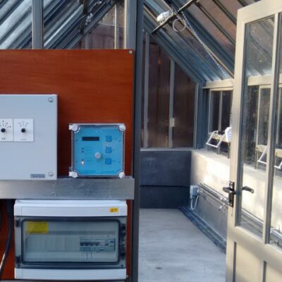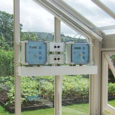 Each controller features a clear LCD display and straightforward keypad, making everyday adjustments easy to understand and manage. The unit is housed in a robust polycarbonate enclosure with stainless steel hinges, offering long-term durability in demanding greenhouse environments. Installation is kept simple, with pre-drilled enclosures and supplied sensors to reduce time on site.