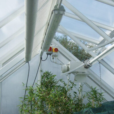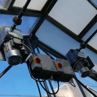 We can calculate the correct motor size for your application, supply the appropriate drive system and install it with full electrical and control integration. Reversing contactor sets with isolators and motor mounting plates are available to simplify installation. For smaller greenhouses, compact chain actuators provide a space-saving vent solution.
